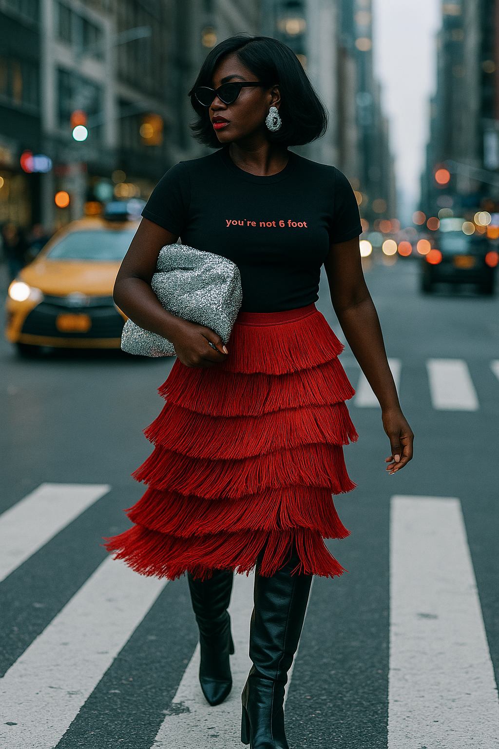 Stretch cotton T-shirt with vinyl print. Hand made to order. Please allow two weeks turn around on orders.